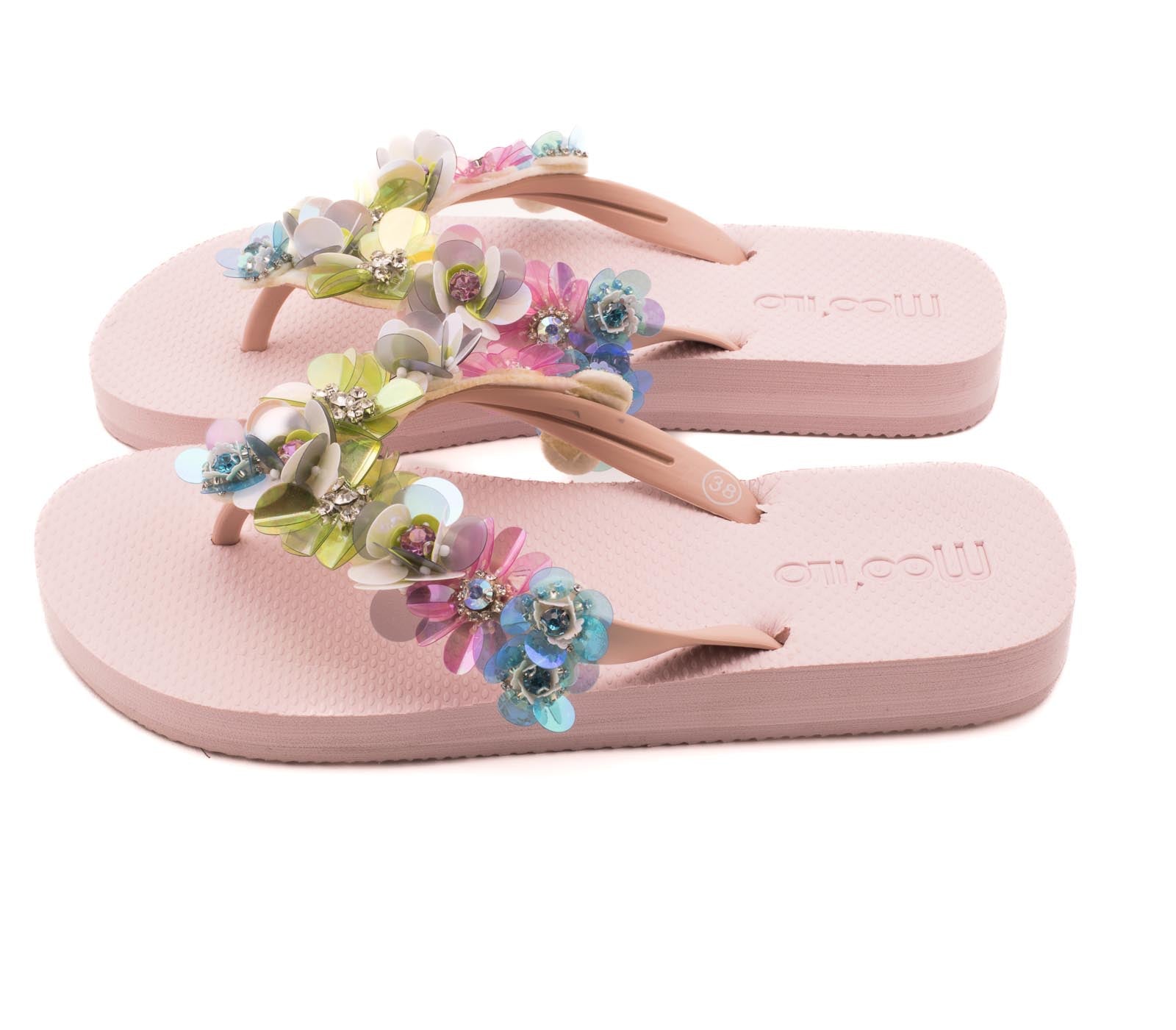 Die Riemchen werden in liebevoller Handarbeit mit Schmucksteinen, Perlen, Muscheln u.v.m. verziert – mal mit dezentem Glanz, mal mit funkelndem Glitzer. So ist für jeden Geschmack das passende Modell dabei.