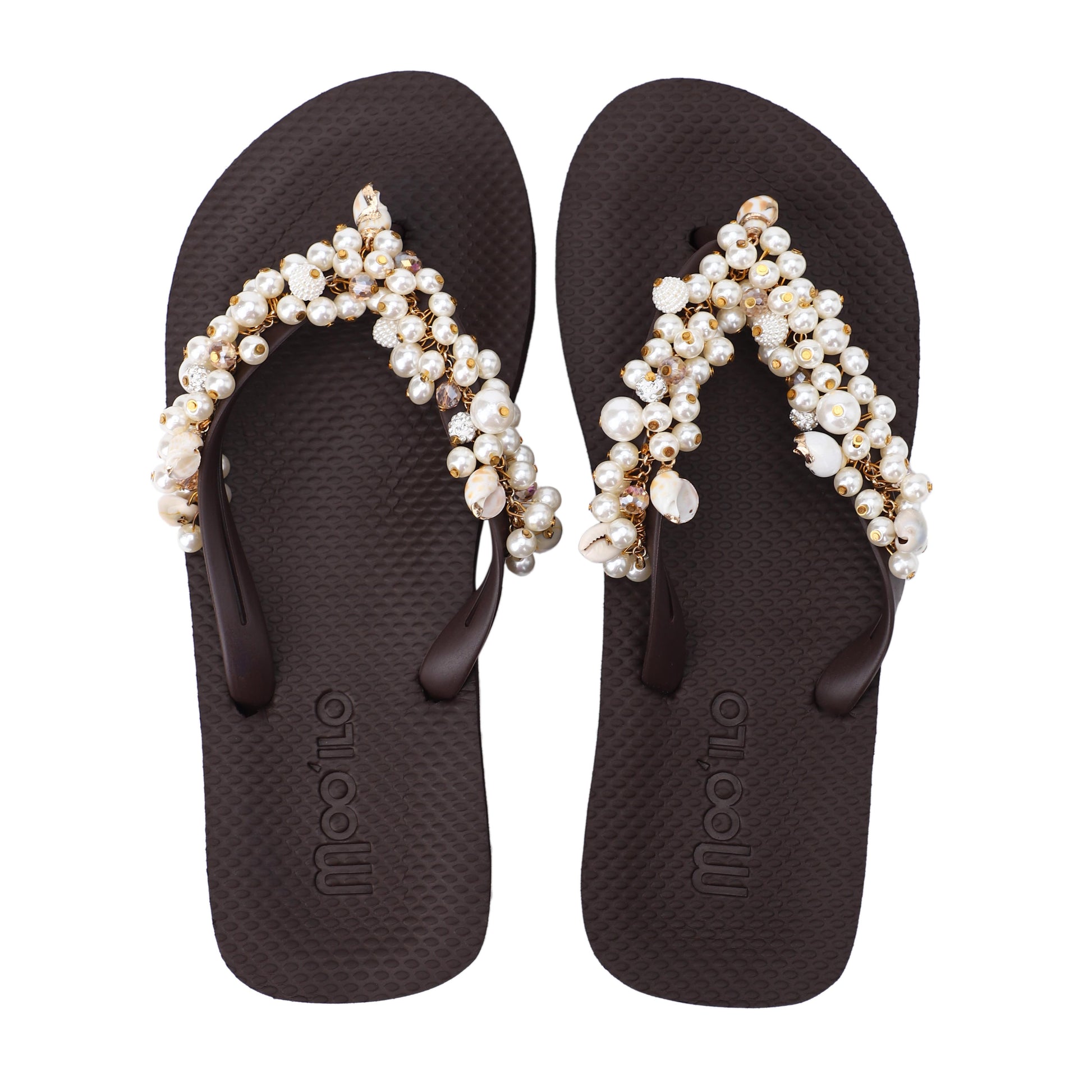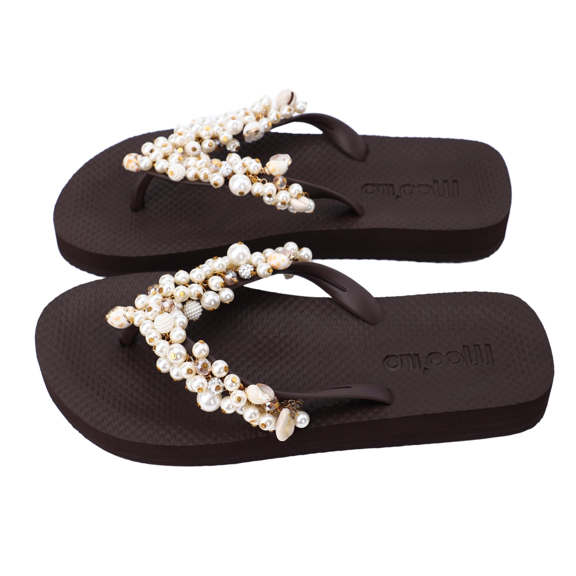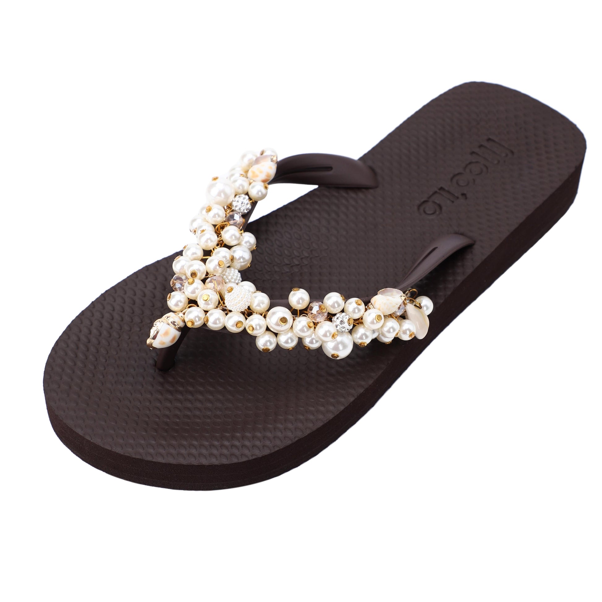 Die Riemchen werden in liebevoller Handarbeit mit Schmucksteinen, Perlen, Muscheln u.v.m. verziert – mal mit dezentem Glanz, mal mit funkelndem Glitzer. So ist für jeden Geschmack das passende Modell dabei.